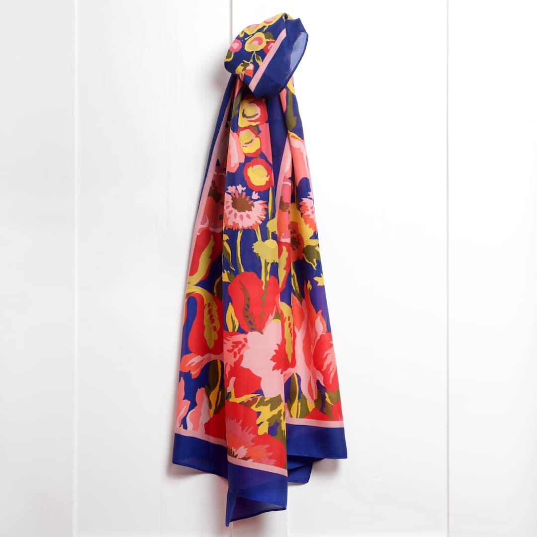 Our best-selling Secret Garden design in a beautiful new palette of oranges and pinks on a navy ground. Light as air. Effortlessly refined.